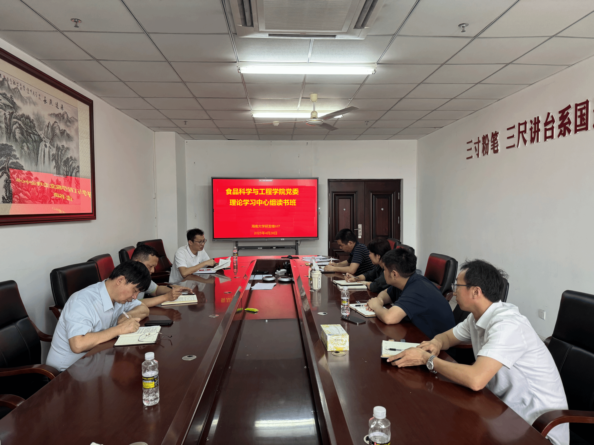 4月28日上午在研发楼617会议室,Beat365官方网站党委理论学习中心组举行深入贯彻中央八项规定精神学习教育读书班暨理论学习中心组学习会,深入学习“习近平总书记关于加强党的作风建设的重要论述和中央八项规定及其实施细则精神”。学院党委书记邢红斌主持会议,理论学习中心组全体成员、各支部书记参加会议。