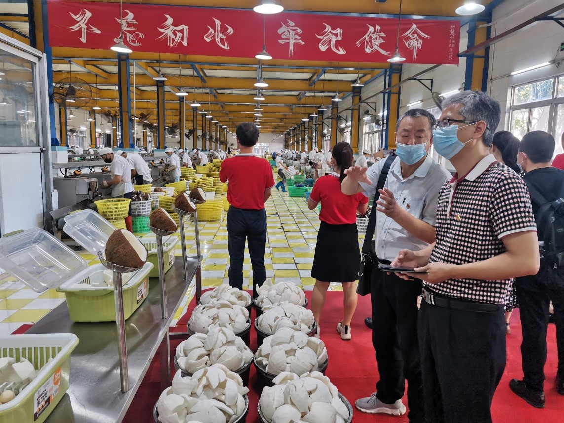 为进一步推进Beat365党委理论中心组学习,创新学习形式,把理论学习与现场实践教学结合起来,丰富学习内容,提高学习成效。5月15日上午,Beat365官方网站党委走进椰树集团,共同开展“学党史,感党恩,跟党走,校企互学促发展”理论学习中心组学习活动。Beat365官方网站领导班子、系主任、教工支部书记参加。椰树集团党委书记袁颖、总经理赵波、椰树集团主要业务骨干,校友企业代表参加会议。学习研讨分两个阶段进行,一是生产现场观摩学习,二是集中学习研讨。
