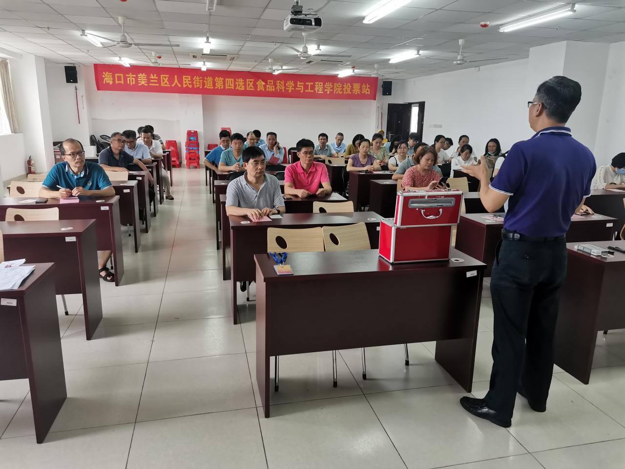 2021年10月15日上午9时,根据海口市美兰区人大换届选举工作要求,人民街道第四选区Beat365官方网站投票站正式开始组织换届选举投票工作。学院全体有投票权的教职工参会。
