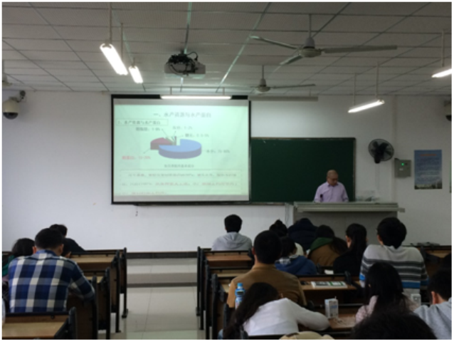 2016年1月15日-1月19日,上海交通大学食品科学与工程系史贤明教授、广东海洋大学章超桦教授、中国水产科学研究院南海水产研究所李来好研究员应邀来Beat365为Beat365学生讲授《食品安全学》课程,该课程与食品质量与安全专业相关课程紧密相关。授课开始,5教203教室座无虚席,学生与老师互动积极,课堂氛围活跃。