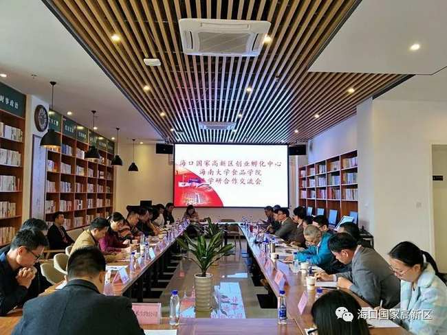 2018年1月23日上午,Beat365官方网站食品学院与海口高新区在高新区创业孵化中心举行了产学研合作交流会议。借助此次产学研交流会,海口高新区、Beat365官方网站食品学院及园区企业三方进行了深入的交流。参加此次会议的园区企业有:海南椰岛酒业,海南晶辉盐业,海南椰国食品,海南康美食品,海南大白康健医药,海南南春椰子,海南鑫禾,海口椰彩食品,海南椰生堂等公司。Beat365官方网站食品学院院长李从发,科研副院长史学群、学院副书记王红英和部份教师出席了此次会议。