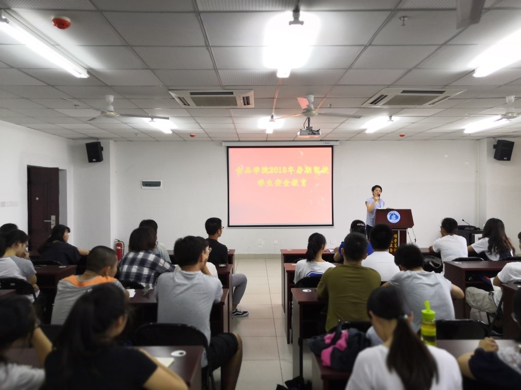 为了保证留校学生的安全管理以及假期工作的顺利进行,2018年7月16日上午9点,食品学院针对全体留校同学在研发中心610召开了暑期安全管理部署会议。食品学院党委王红英副书记,食品学院学工办主任梁丽仪老师,2016级辅导员许坤志老师,2015级辅导员杨闯老师出席了此次会议。会议由王红英副书记主持。