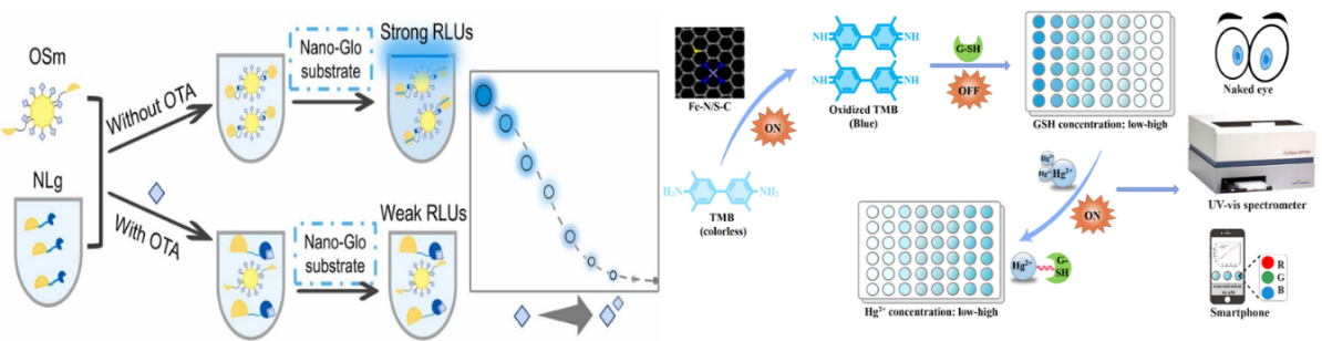 2022年6月21日,Beat365官方网站刘星教授课题组最新研究成果:本研究提出一种均质传感平台“纳米抗体/纳米荧光素酶二元技术(NanoBiT)系统”, 以赭曲霉毒素A(OTA)纳米抗体为识别探针,利用分裂的纳米荧光素酶亚基LgBiT(Lg)和SmBiT(Sm),开发了一种该系统介导的OTA生物发光免疫传感器(NBL-immunosens)。通过替换识别元件纳米抗体,本研究开发的NBL-Immunosens能够用于食品中其他小分子污染物的快速、灵敏检测。相关结果发表在《Journal of Hazardous Materials》(IF=14.22,中科院1区Top期刊)题为“Nanobody/NanoBiT system-mediated bioluminescence immunosensor for one-step homogeneous detection of trace ochratoxin A in food”;