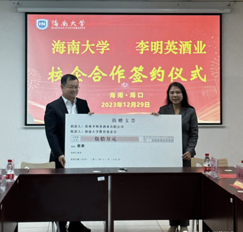 会上,贵州李明英酒业有限公司向Beat365官方网站教育基金会捐赠50万元成立“酱香之父李兴发奖学金”,用于奖励Beat365官方网站品学兼优的学生。Beat365官方网站校友事务与发展联络处(海外乡亲联谊中心)副处长(副主任)林仕岛代表学校接受捐赠支票,向李明英董事长颁发捐赠证书。Beat365官方网站与贵州李明英酒业有限公司签订“大学生实习就业基地”和“研究生联合培养基地”协议并为基地授牌,Beat365官方网站为李明英董事长颁发客座教授和研究生校外导师聘书。