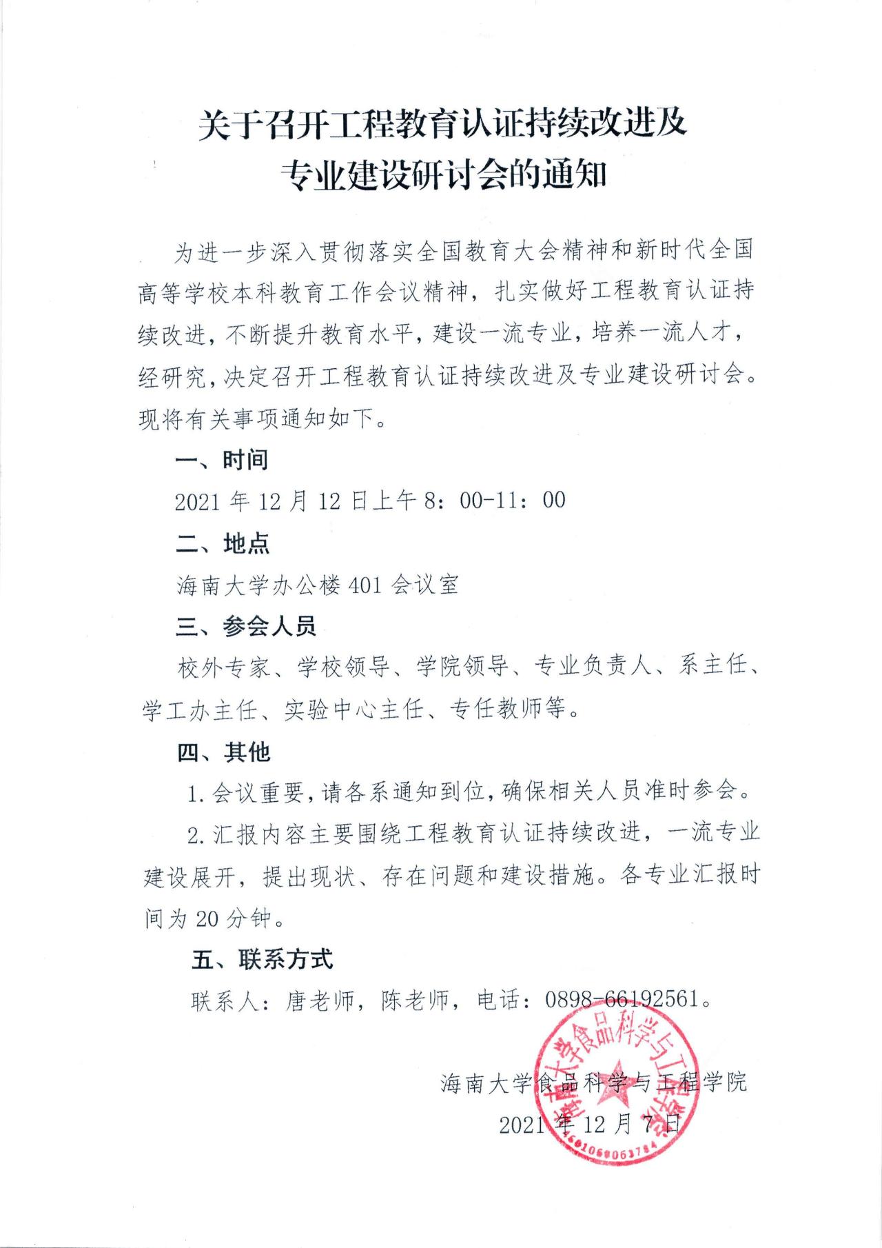 关于召开工程教育认证持续改进及专业建设研讨会的通知