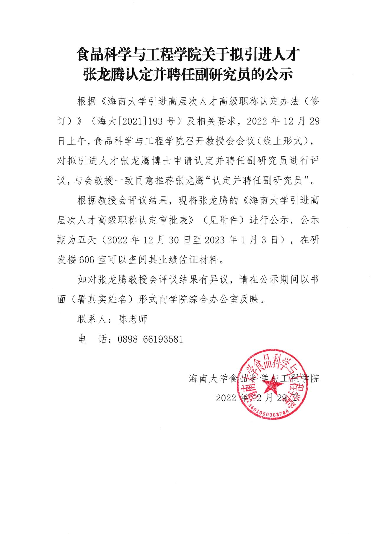 Beat365官方网站关于拟引进人才张龙腾认定并聘副研究员公示