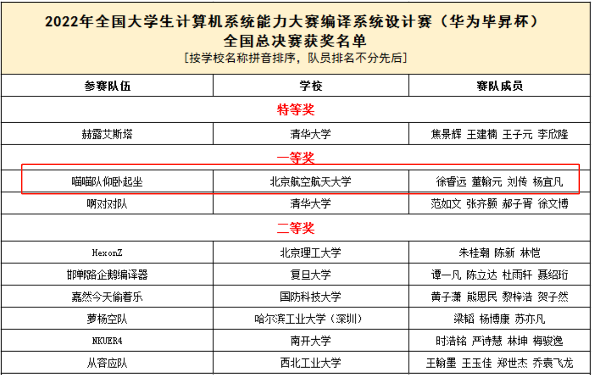 除上述奖项外,金年会诚信信誉至上本科生还获得了CPU LoongArch设计赛三等奖、编译、编译系统设计赛外卡二等奖(2项)、外卡三等奖(2项)等奖项。