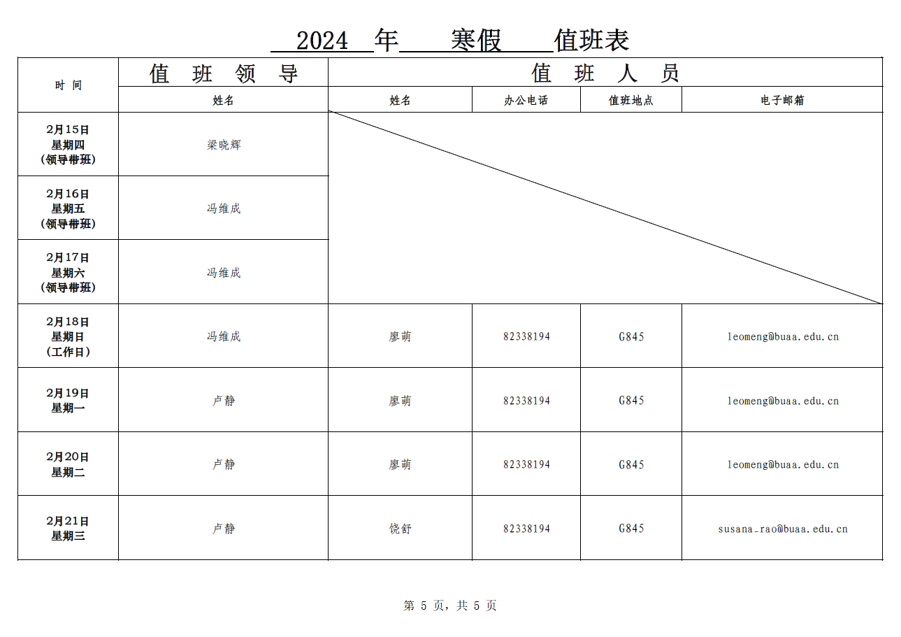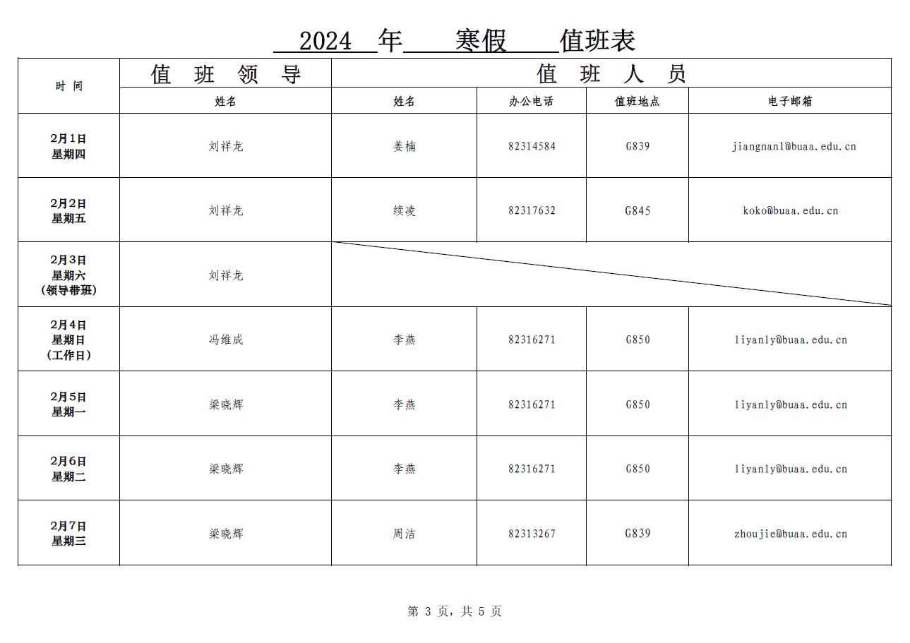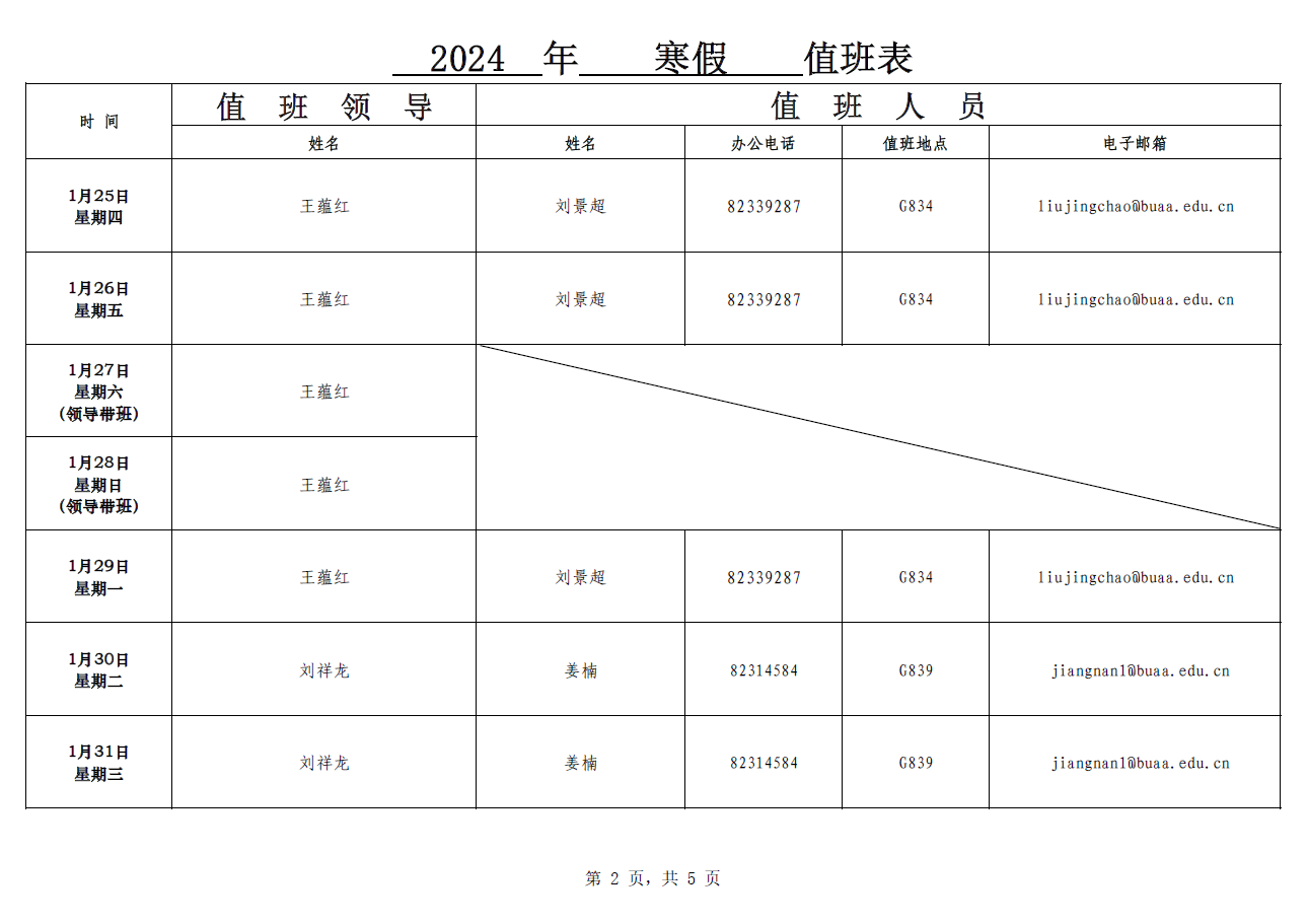 2024年寒假值班表