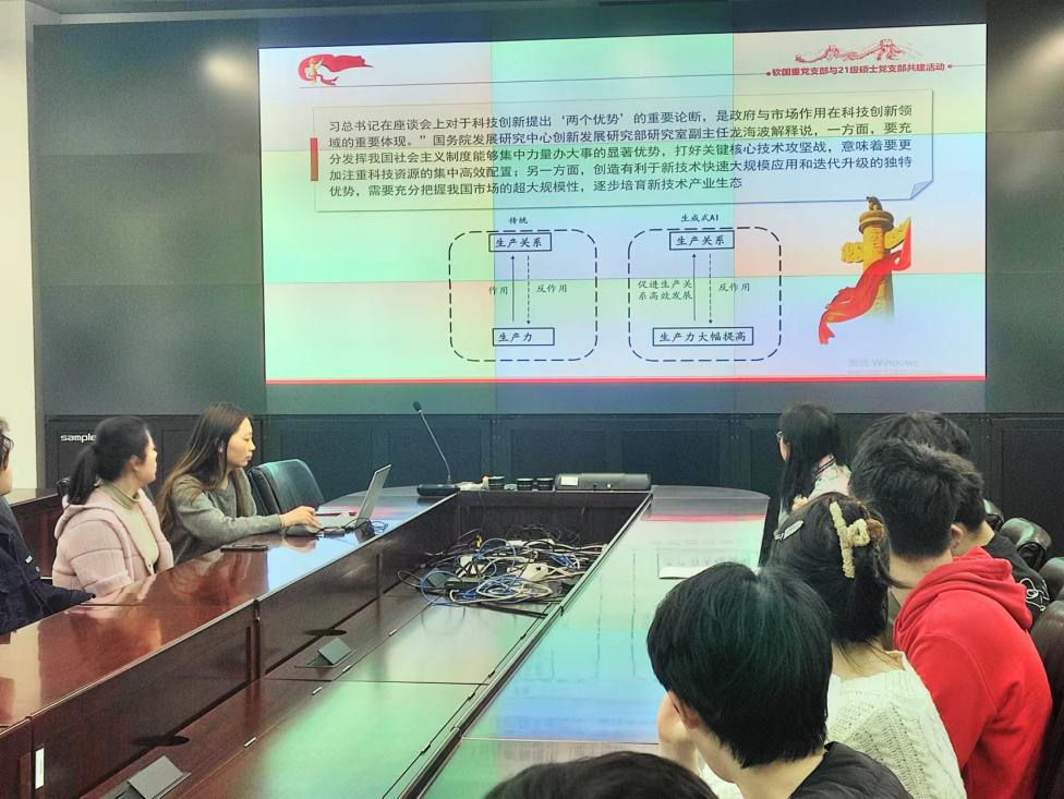 为深入学习贯彻党的二十大精神,积极推动学院研究生党支部之间的交流与学习,2023年4月6日下午,北航金年会诚信信誉至上软国重党支部和硕21062学生党支部于新主楼G610会议室开展了题为“党建与学术共生,理论与实践融合”的联建活动。本次活动旨在探讨人工智能技术对高校党建工作的赋能作用,促进党建与学术的相互促进、相互提高。