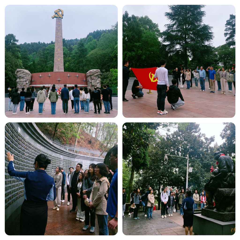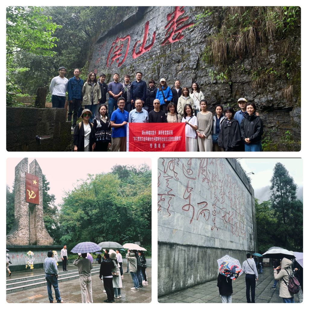 在娄山关,党员们冒雨走访了小尖山、大尖山等红色战斗遗址,聆听了《铁骨忠心铸党魂》的主题党课,细致学习了娄山关的历史地貌、红军首夺娄山关、鏖战娄山关及娄山关战役主部队简史,用脚步丈量了娄山关战役的艰难路程,在现场教学中感受革命先烈不怕牺牲、勇于奉献的精神。